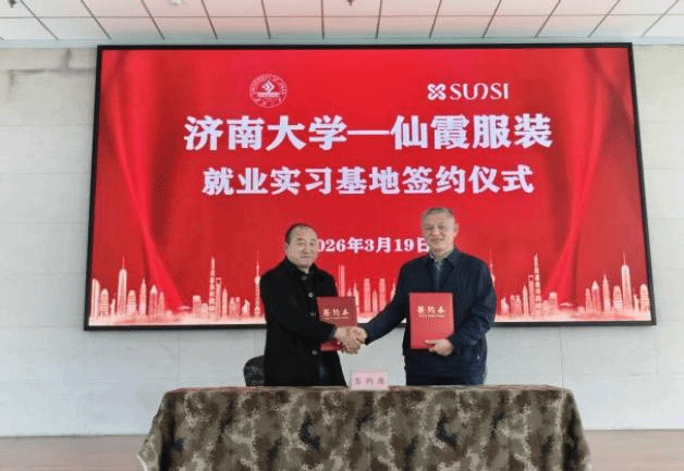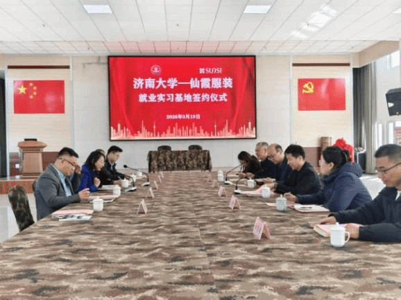 在山东仙霞服装有限公司,副董事长张福生对学院一行到来表示热烈欢迎,并介绍了企业发展历程、产业布局、人才需求及未来规划。陈春锋结合学院发展历程、专业设置、师资力量、人才培养特色以及2026届毕业生基本情况,介绍学院近年来在实践教学、校企协同和服务社会等方面的工作成效。她谈到,学院结合学科专业优势,紧扣学校就业工作部署,进一步深化与企业合作对接,推动人才培养与行业需求同频共振,更好服务学生成长成才和高质量就业。董俊杰从学校就业工作整体布局上作介绍。他指出,学校始终把毕业生就业工作摆在突出位置,持续将校院工作一体化模式落到实处,形成“领导抓、教师推、校友帮、辅导员促”的四级就业助推体系。希望双方以此次交流为契机,在就业实习基地建设、岗位资源共享、人才供需对接等方面开展更加务实深入的合作,共同推动校企协同育人取得更大成效。