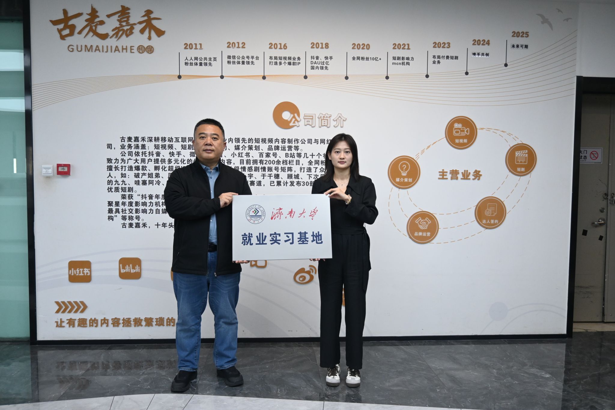 签约仪式上,学院与两家企业分别签署相关合作协议,朱海龙代表学院签订《济南大学毕业生就业基地协议书》并为就业基地揭牌,潘颖代表学院签订《济南大学大学生社会实践基地协议书》并为实践基地揭牌。此次签约标志着学院与企业在人才培养、实习就业等方面建立了更加稳固、长效的合作关系。企业负责人对文学院一行的到访表示热烈欢迎,并对学院的人才培养质量给予高度评价,表示将进一步加强合作,提供更多优质岗位和实践机会,实现互利共赢、共同发展。