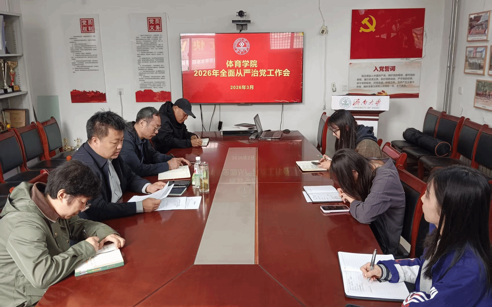 3月30日,体育学院在实验楼会议室召开2026年度全面从严治党工作会议,学院党委领导班子成员、全体科级干部参加会议。学院党委书记孙成豪主持会议并作工作部署讲话。