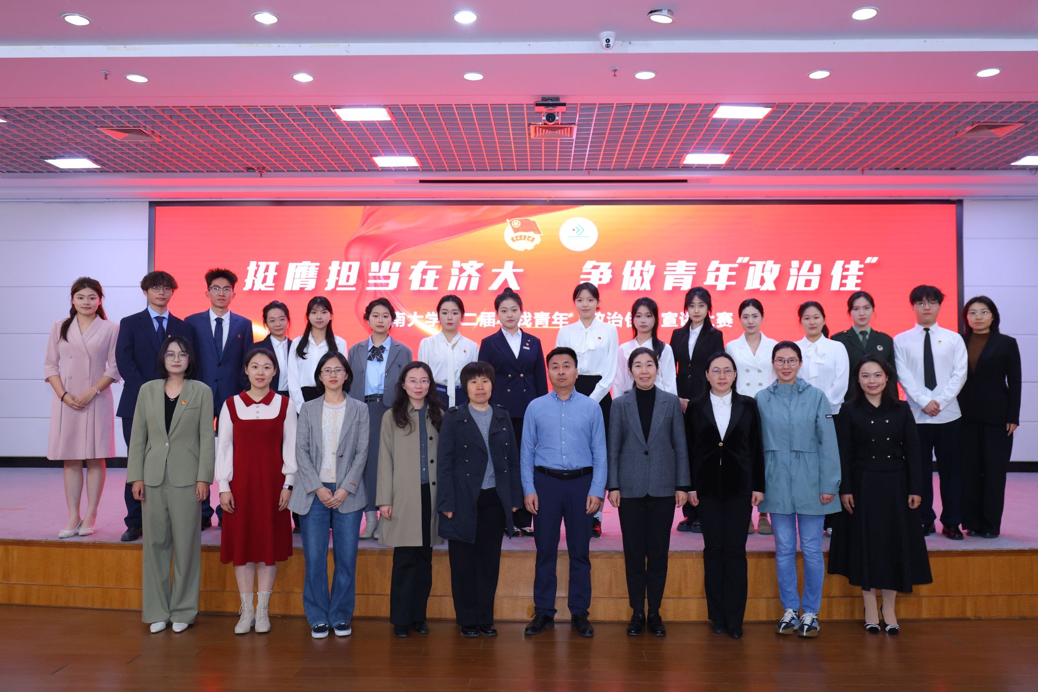 4月7日,由学校党委组织部、宣传部、统战部、学生工作处(武装部)、教师工作部、研究生工作部和团委(创新创业学院)联合主办的济南大学第二届寻找青年“政治佳”宣讲大赛决赛在第一学术报告厅举行。各主办单位相关负责人出席活动。