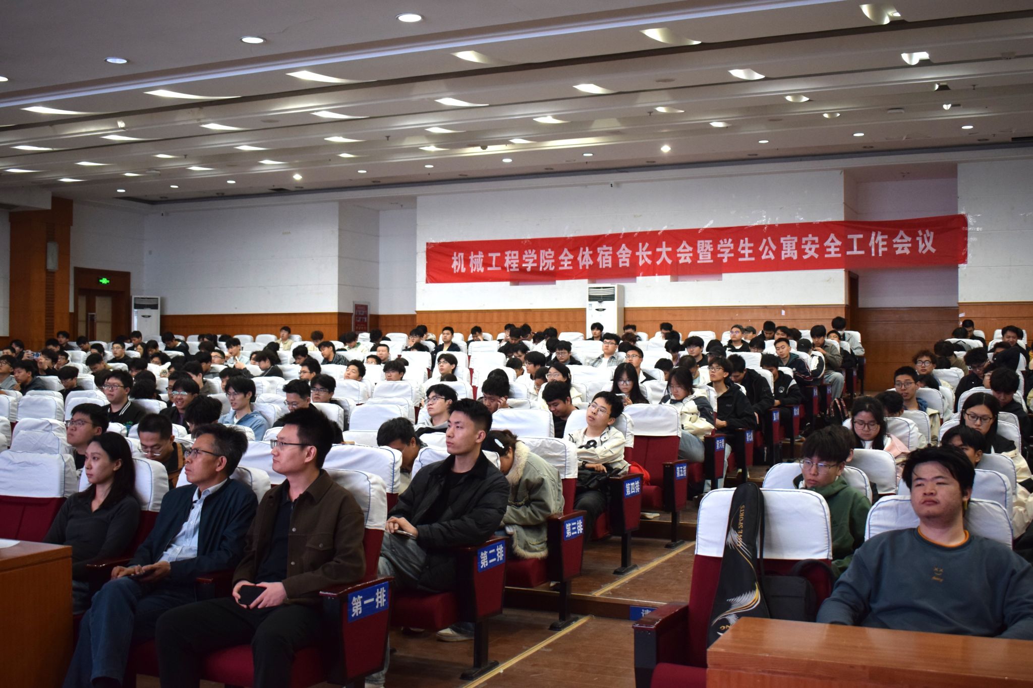 4月7日晚,机械工程学院在学校第二学术报告厅召开全体宿舍长大会暨学生公寓安全工作会议。学院党委副书记孙成政、全体辅导员及学院全体宿舍长参会。会议由学办主任宁大千主持。