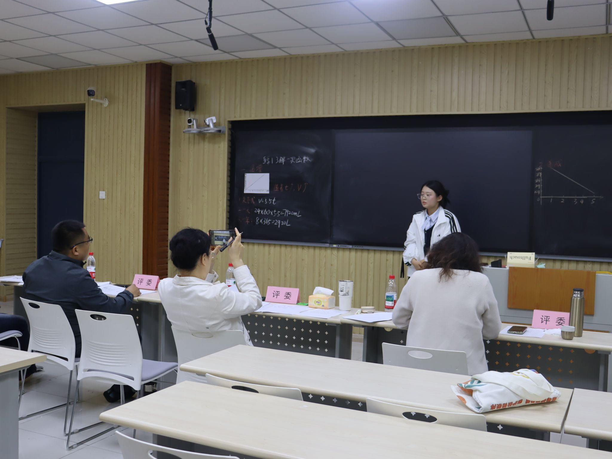 4月12日校级决赛阶段,学院以初赛成果为依托,严格按照大赛要求组织选拔流程。评委组从教学目标、教学内容、教学过程、教学效果、专业素养和答辩情况等维度,对参赛选手进行全面细致的考核与点评。评委们充分肯定我院师范生在赛中展现的专业素养与教学热情,同时结合数学学科教学的实际需求,针对授课节奏把控、重难点突破、师生互动设计等方面提出精准指导,既指出部分选手在课堂应变、板书细节上的不足,也为后续教学能力提升指明了方向。