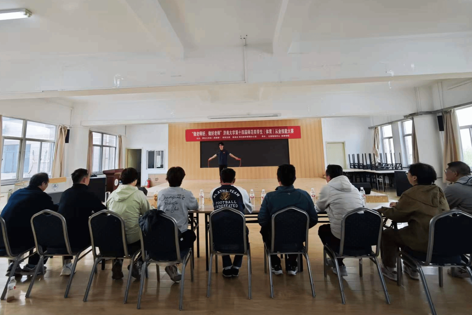 为深入落实师范类专业人才培养要求,夯实体育教育专业学生从业基本功,选拔优秀选手备战省级师范类学生从业技能大赛,近期,济南大学体育学院“做老师好,做好老师”——师范类学生(体育)从业技能大赛决赛举办。