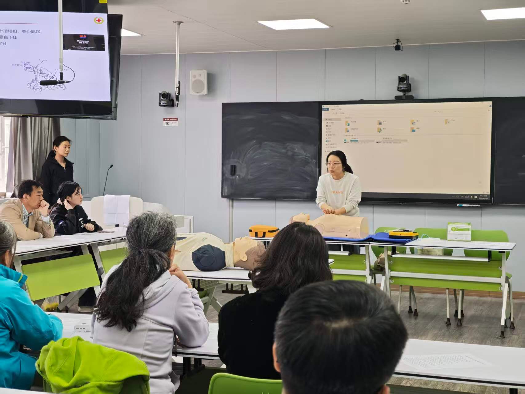 在随后的实操环节,参训教师们热情高涨,在讲师手把手的指导下,利用专业人体模型反复练习胸外按压的深度、频率和手法,以及掌握人工呼吸的正确操作要领。讲师们对每一位学员的操作进行了细致点评和纠正,确保大家真正掌握这项关键时刻能挽救生命的技能。