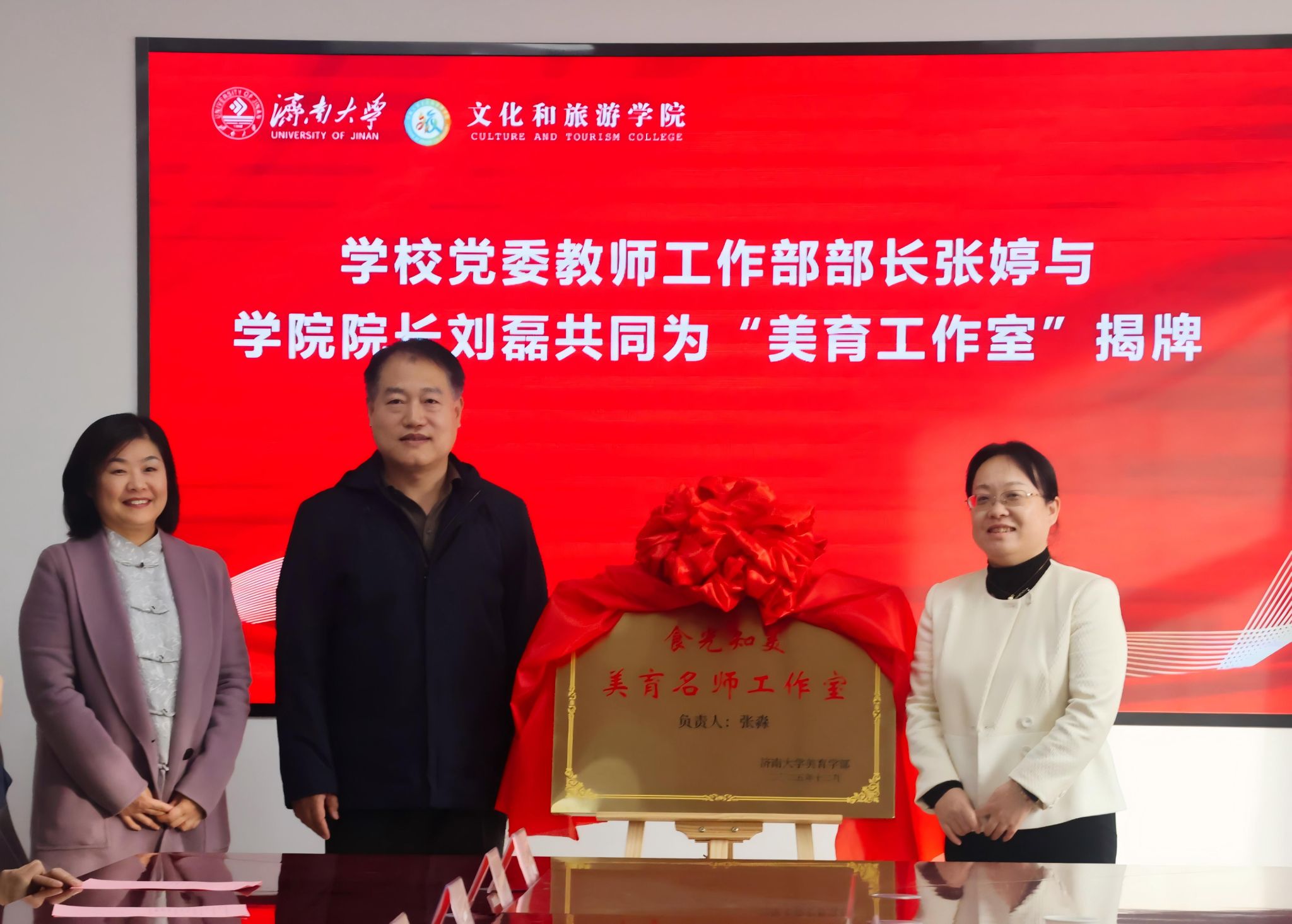 学校党委教师工作部部长张婷与学院院长刘磊共同为“食光知美”美育名师工作室揭牌,标志着学院美育工作拥有了一个集研究、实践、交流于一体的新平台,对于凝聚美育师资、孵化美育成果、辐射美育效应具有重要意义。