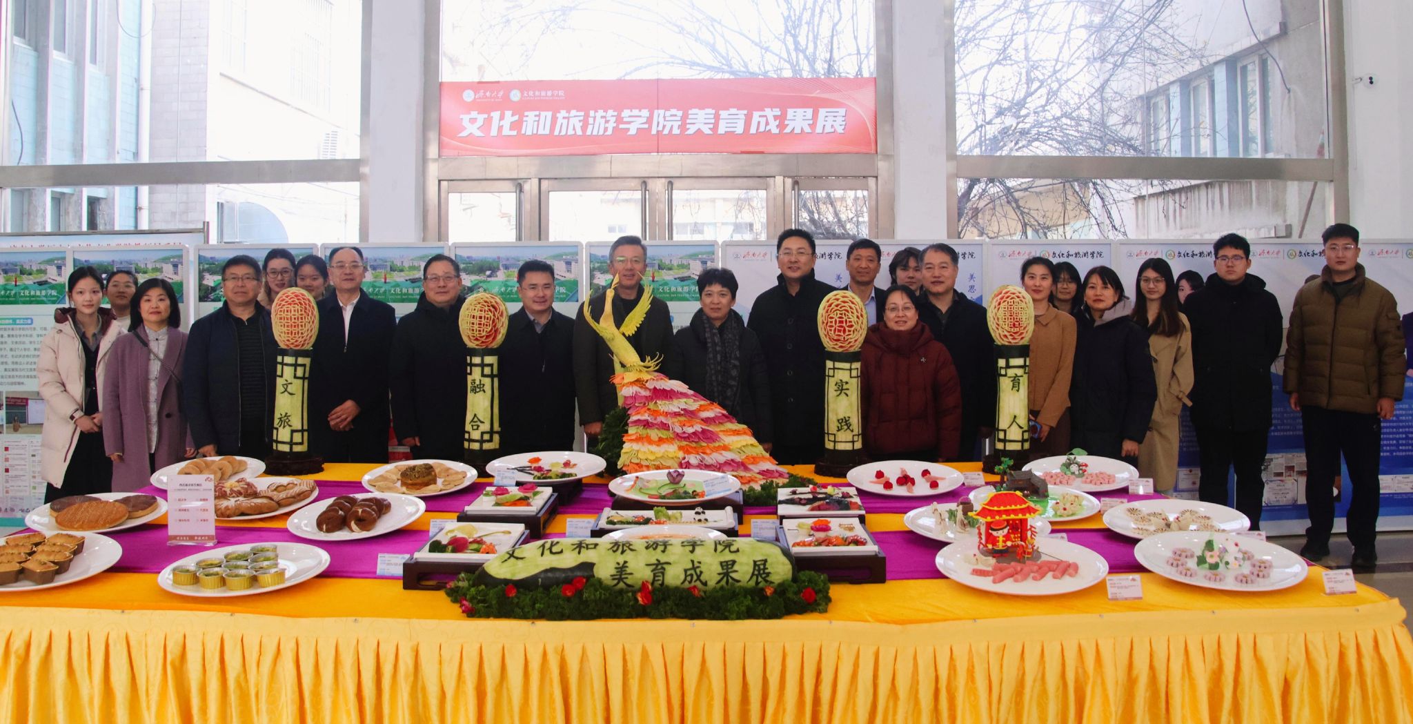 岁序更替,华章日新。12月31日下午,文化和旅游学院美育成果展暨优秀学子表彰大会于学院会议室隆重举行。学校党委副书记、美育学部主任商华,党委常委、宣传部部长卢旺出席活动,学校学生工作处(武装部)、党委教师工作部、团委等部门相关负责同志及学院全体党政领导班子、教师代表、获奖学生代表、各班级学生代表参加活动,活动由学院党委副书记、副院长信苏珊主持。