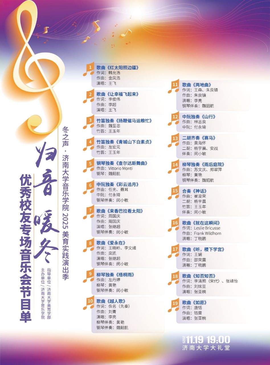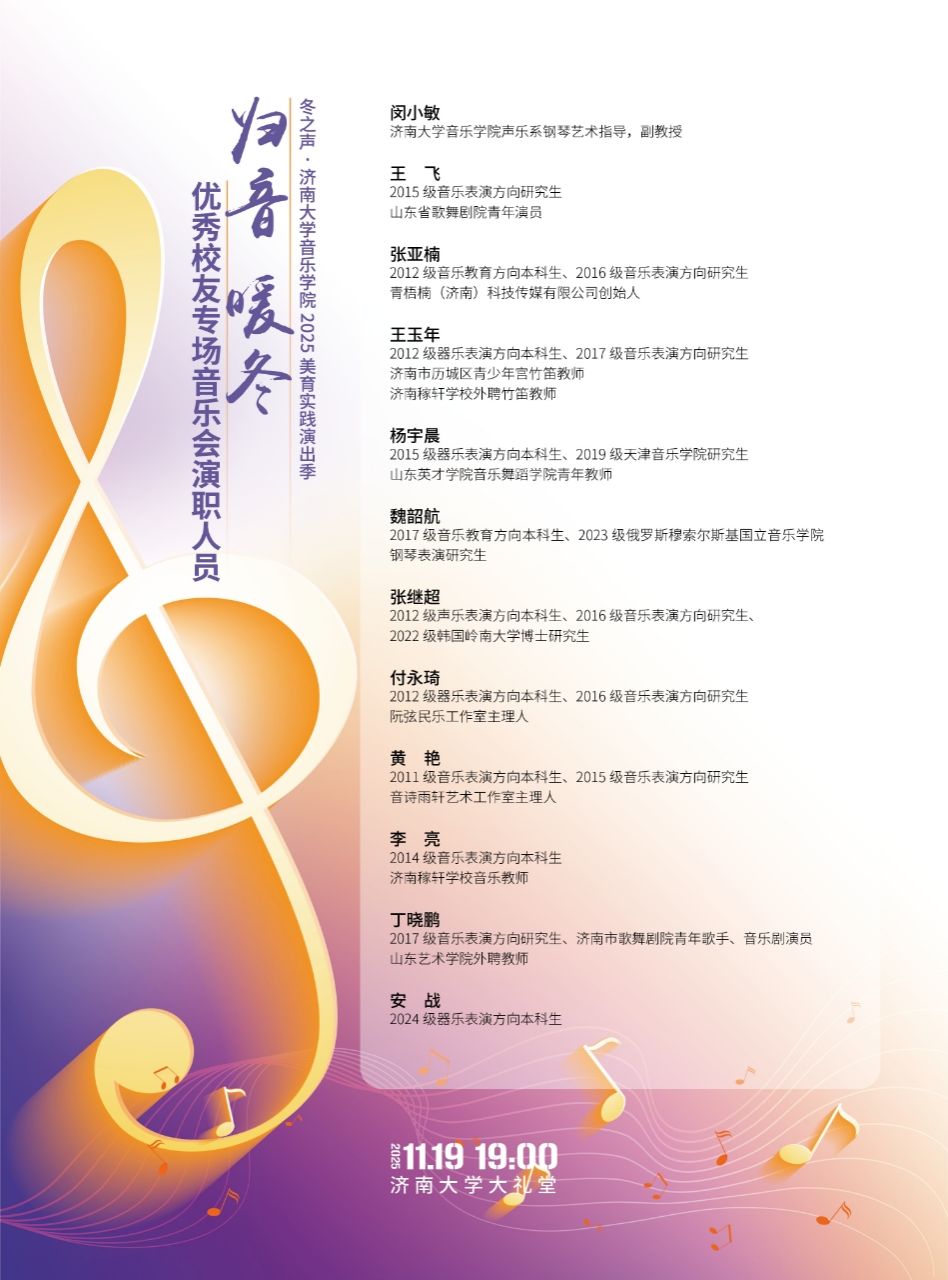 【冬之声】济南大学音乐学院2025美育实践演出季——“归音·暖冬”优秀校友专场音乐会