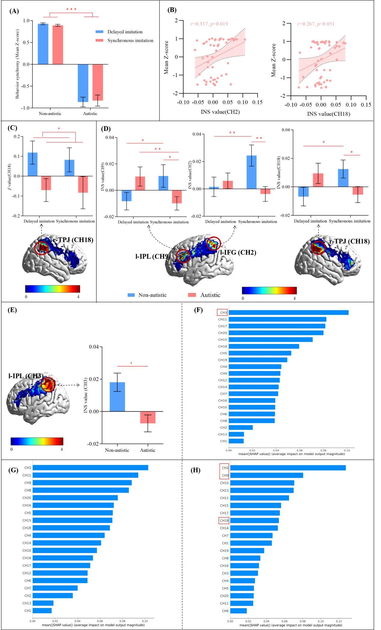 Social motor synchrony is a core foundation of children's social interaction and a key indicator of early development, yet research findings on this phenomenon in the autistic population have long been controversial. Previous studies are mostly confined to a single disciplinary perspective, focusing on behavioral synchronization or activation analysis of individual brain regions, while neglecting the interbrain neural synchronization mechanism that underlies the interaction between two parties in social contexts. Breaking through the barriers of a single discipline, the team innovatively combined cutting-edge neuroscientific technology—functional near-infrared spectroscopy (fNIRS) hyperscanning—with artificial intelligence machine learning methods. From the novel perspective of interbrain neural synchronization, they accurately distinguished the characteristics of intentional and spontaneous social motor synchrony in autistic children, confirming that interbrain neural synchronization indicators can serve as effective neural markers for distinguishing the autistic population. Additionally, this study represents the first application of machine learning methods to the classification of interbrain neural synchronization indicators both domestically and internationally, providing an innovative interdisciplinary approach for researching the interbrain neural mechanisms of neurodevelopmental disorders such as autism. The research results offer new neural markers for the early screening and accurate diagnosis of autism, and lay a solid foundation for the formulation of subsequent targeted intervention programs, demonstrating the value of the integration of "psychology + neuroscience + information science."